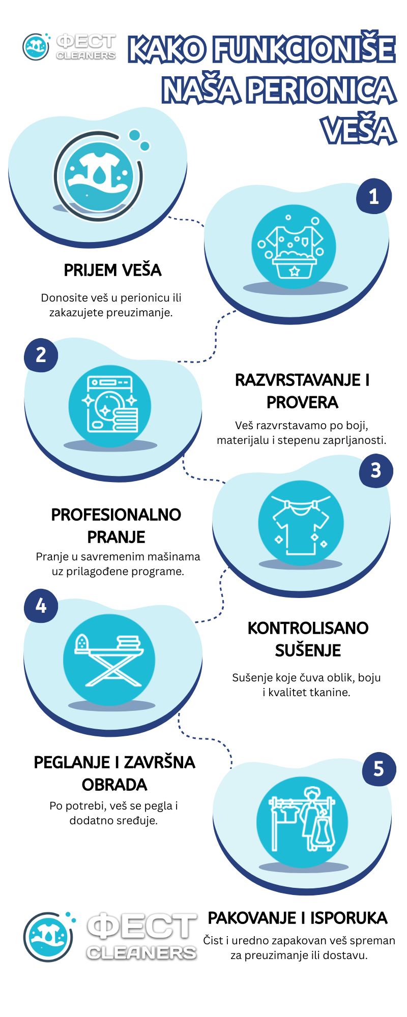 U FEST Cleaners spajamo najnoviju tehnologiju čišćenja sa posvećenošću detaljima koju zaslužuje svaki komad Vaše garderobe. Naš cilj je da Vam osiguramo besprekorne rezultate i maksimalnu pogodnost, tako da zaboravite na brigu o vešu i fokusirate se na ono što je zaista bitno. Oslonite se na nas za savršeno čiste, složene i mirišljave rezultate, svaki put.